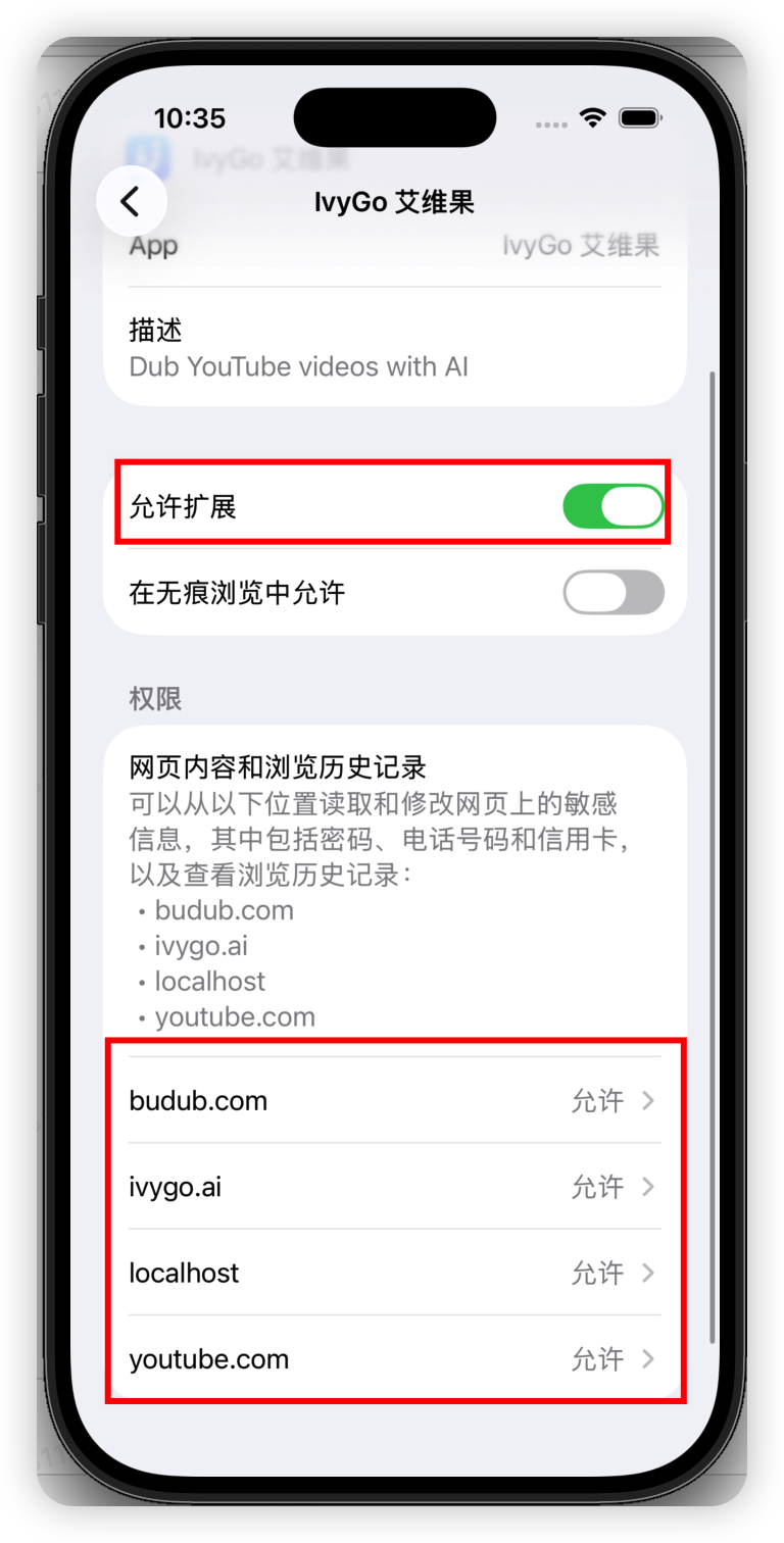 - ✅ Safari 扩展设置中显示 "YouTube 中文配音" 已启用